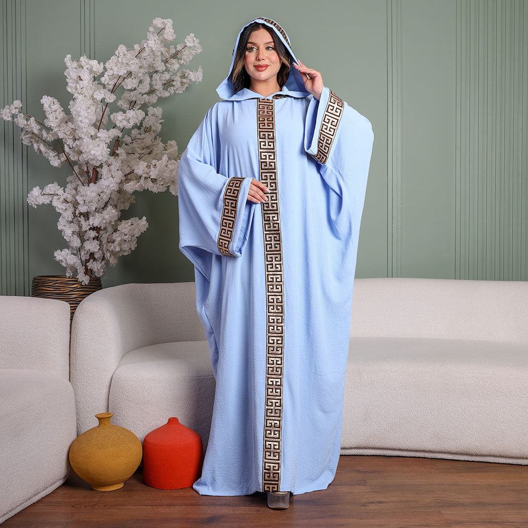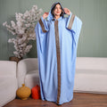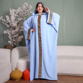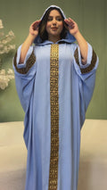 إسدال مغربي كريب سي واي مع شريط تطريز، وياقة وكابشو.
