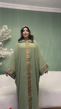 إسدال مغربي كريب سي واي مع شريط تطريز، وياقة وكابشو.