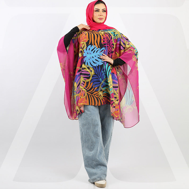 بونشو شيفون بدون بطانة مطبوعة ديجيتال من تصميماتنا الخاصة