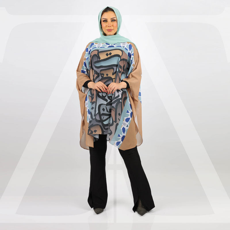 بونشو شيفون بدون بطانة مطبوعة ديجيتال من تصميماتنا الخاصة