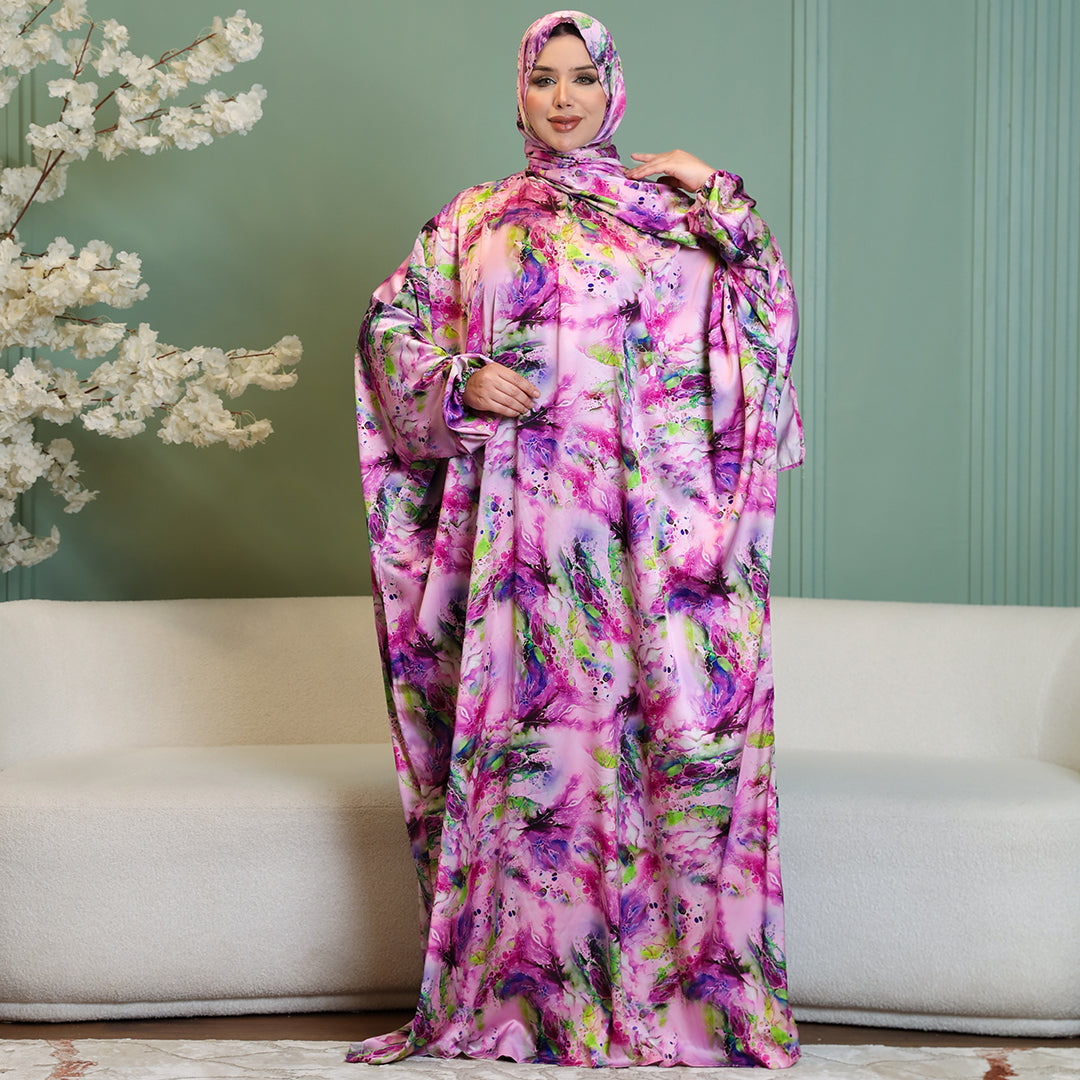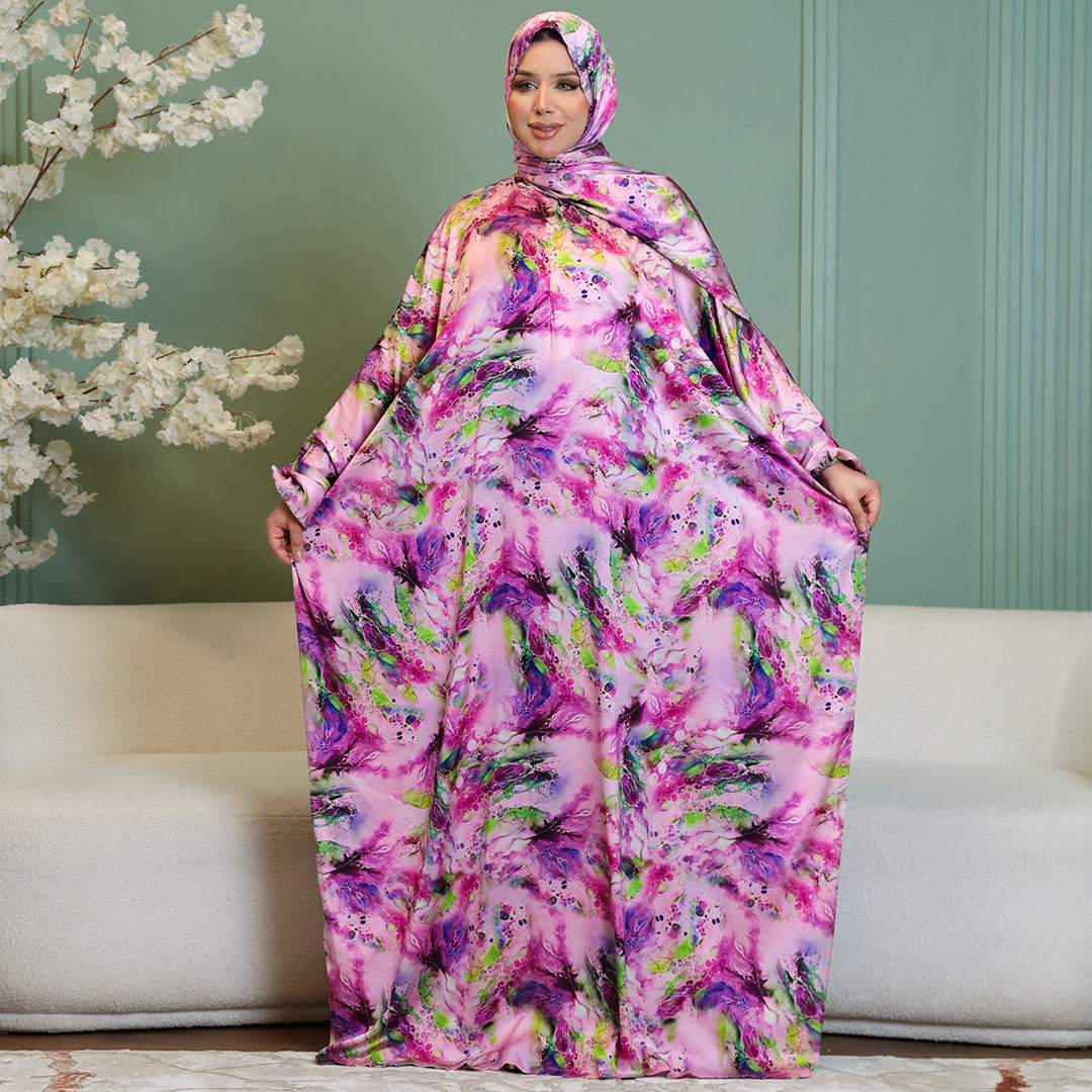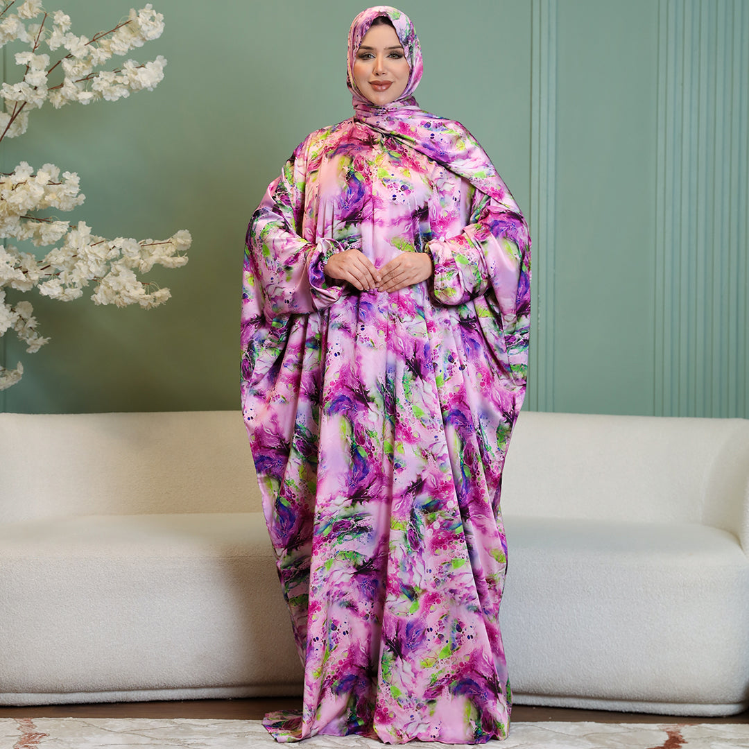 ثوب صلاة حرير ستان مطبوع مع غطاء الرأس