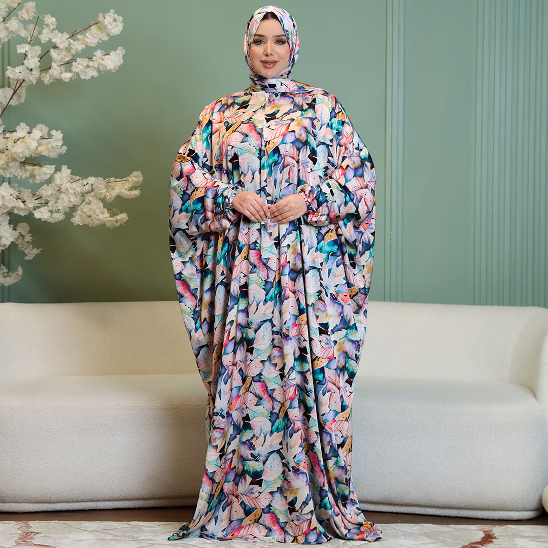 ثوب صلاة حرير ستان مطبوع مع غطاء الرأس