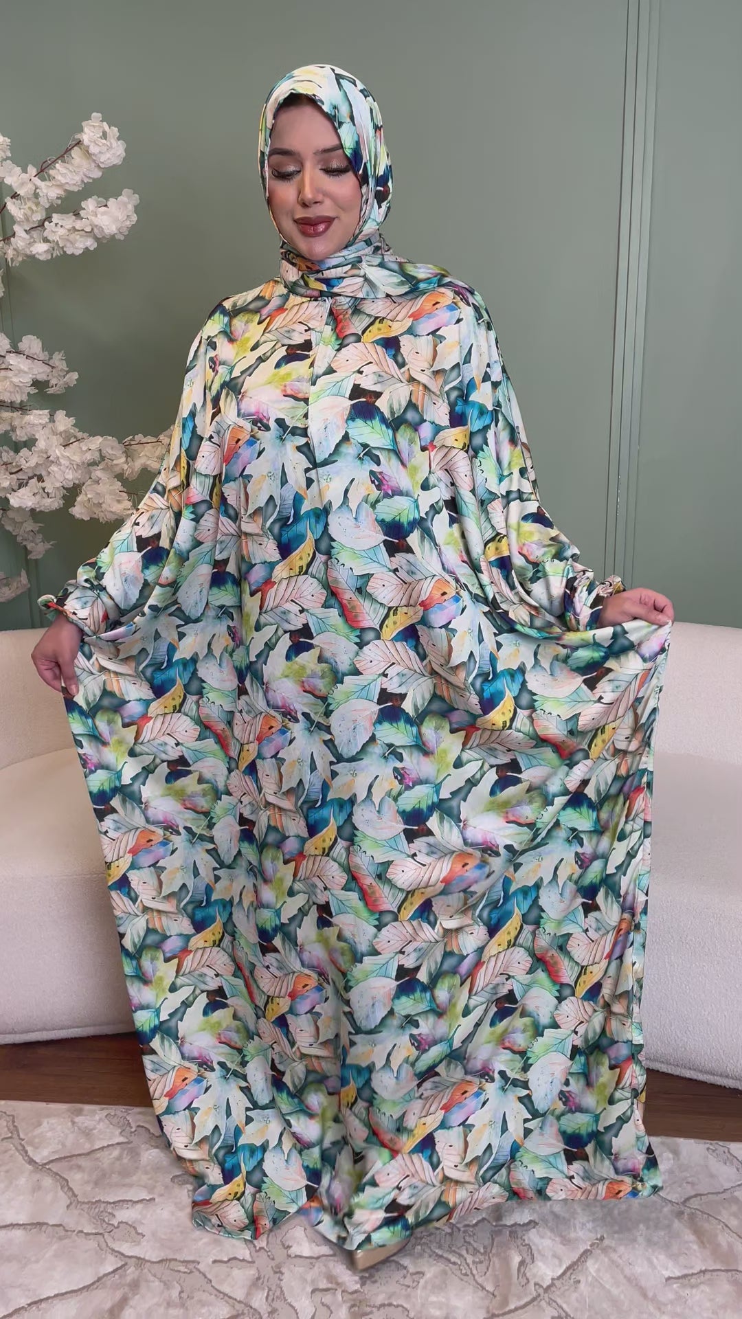 ثوب صلاة (إسدال)حرير ستان مطبوع من تصميماتنا الخاصة