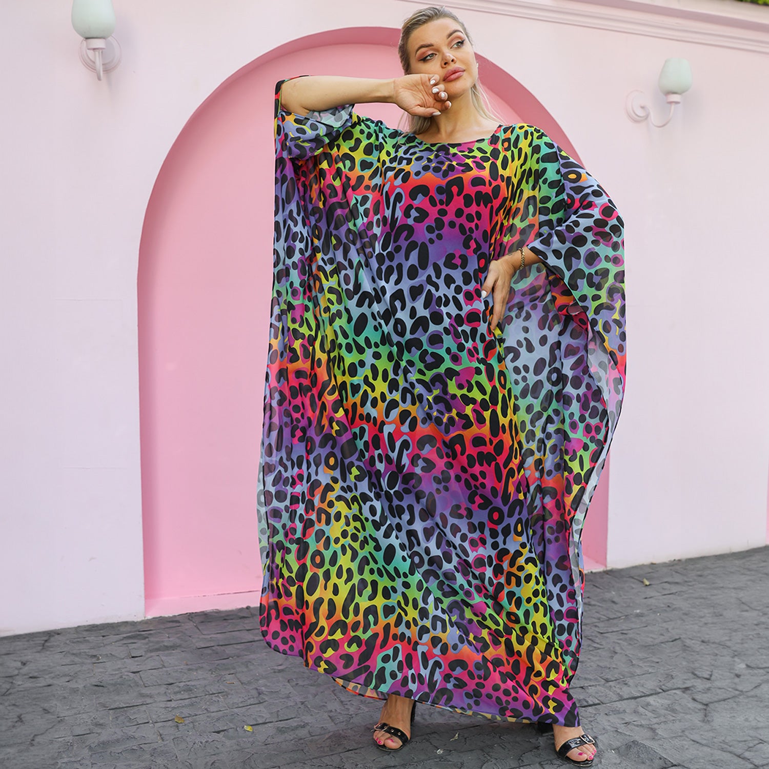 چلابية شيفون شفاف بدون بطانة طباعة ديجيتال من تصميماتنا الخاصة