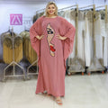 چلابية شيفون شفاف بدون بطانة بأبليك تطريز وجوه ترتر