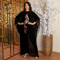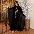 چلابية شيفون شفاف بدون بطانة بأبليك تطريز وجوه ترتر
