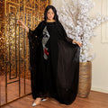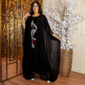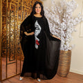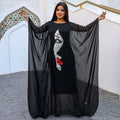 چلابية شيفون شفاف بدون بطانة بأبليك تطريز وجوه ترتر