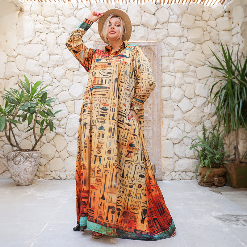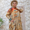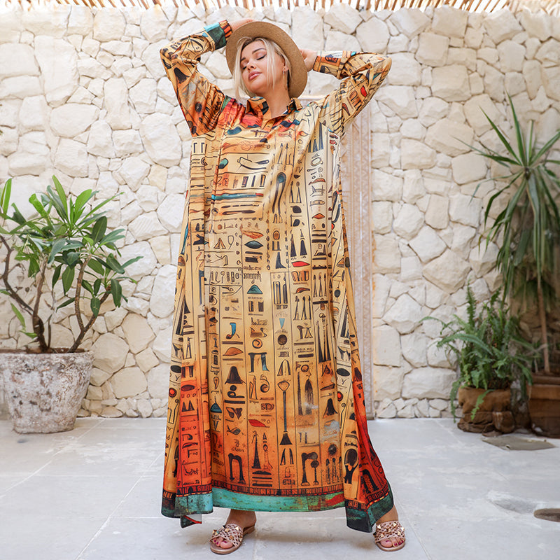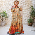 دريس حرير ستان أرماني بأكمام طباعة ديجيتال من تصميماتنا الخاصة فري سايز يناسب ٧٠ك إلى ٩٠ك و الطول من الكتف ١٤٠سم