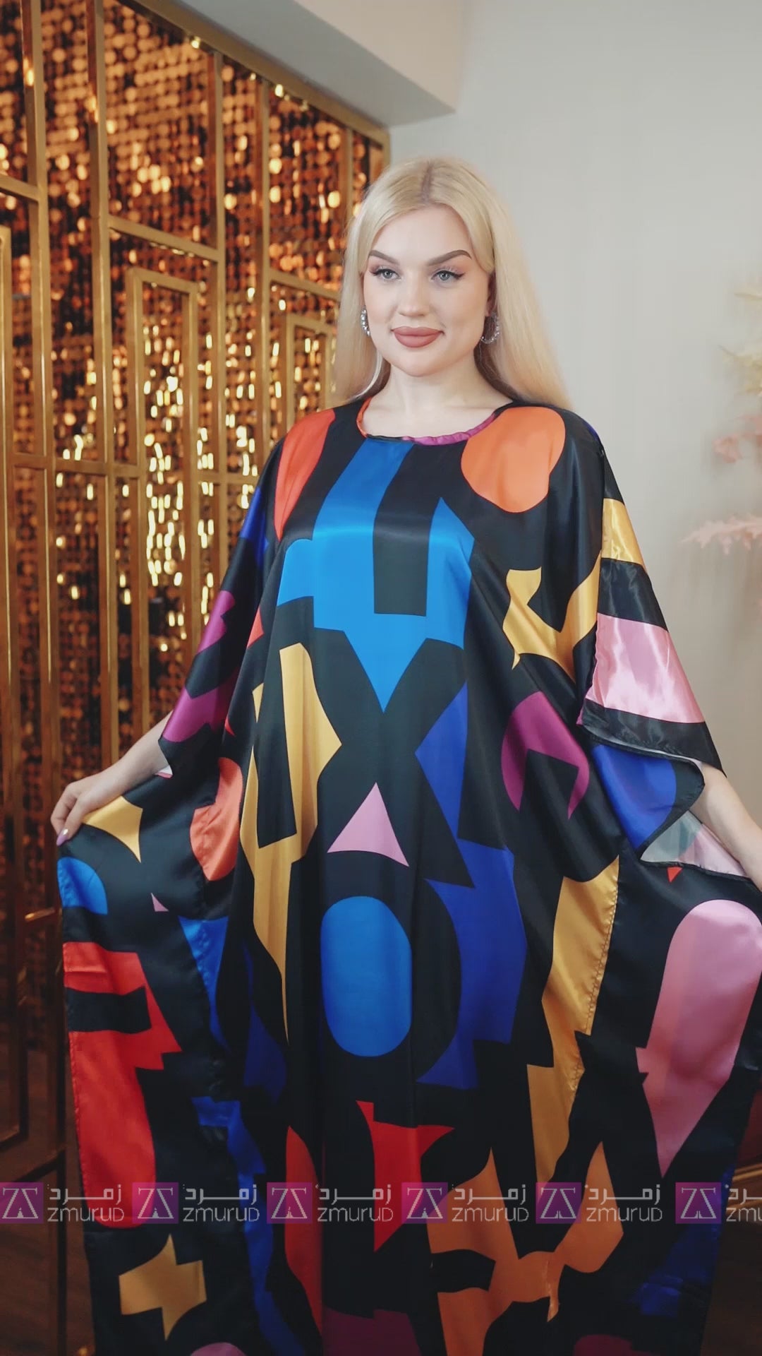 چلابية حرير ستان طباعة ديجيتال من تصميماتنا الخاصة فري سايز تناسب ٧٠ك إلى ١٣٠ك
