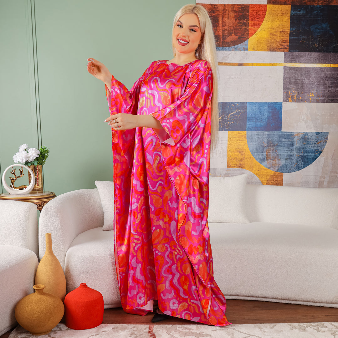 چلابية حرير ستان طباعة ديجيتال من تصميماتنا الخاصة فري سايز تناسب من ٧٠ ك إلى ١٣٠ك