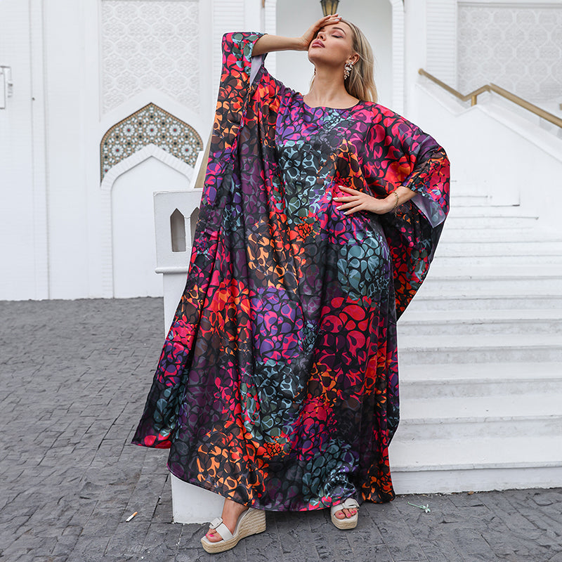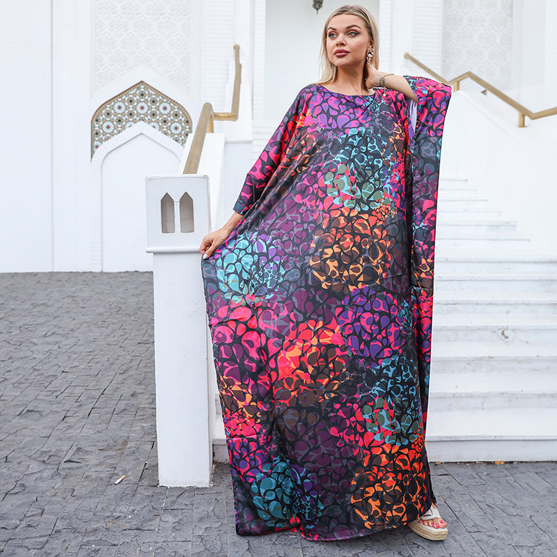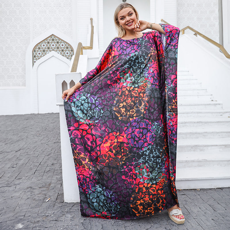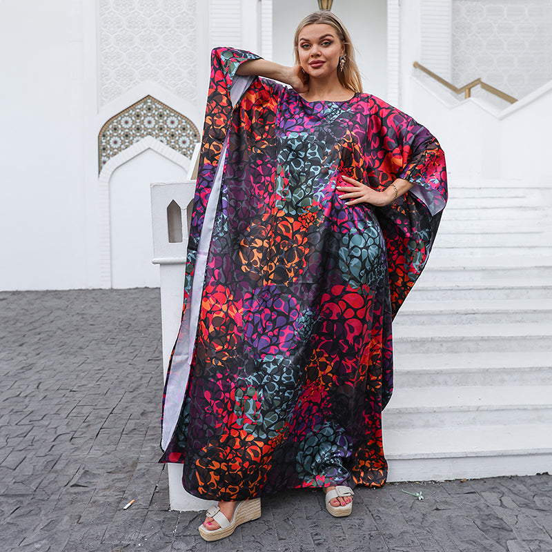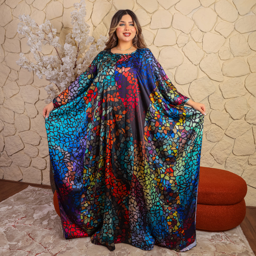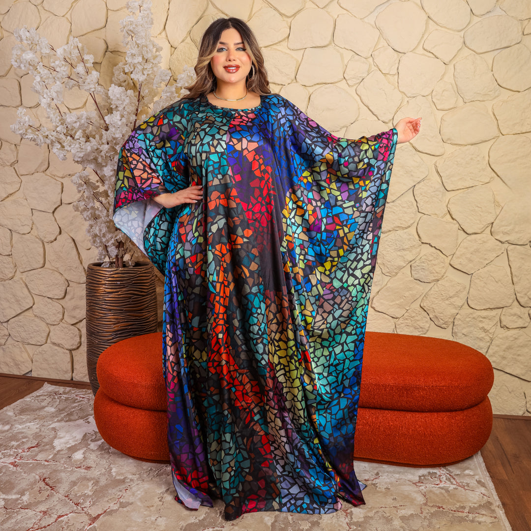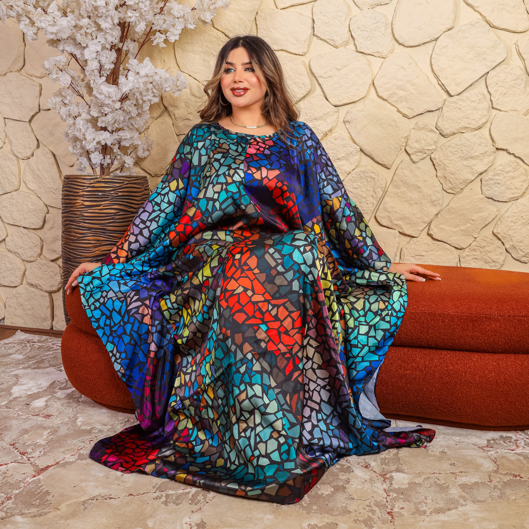 چلابية حرير ستان طباعة ديجيتال من تصميماتنا الخاصة فري سايز تناسب من ٧٠ ك إلى ١٣٠ك
