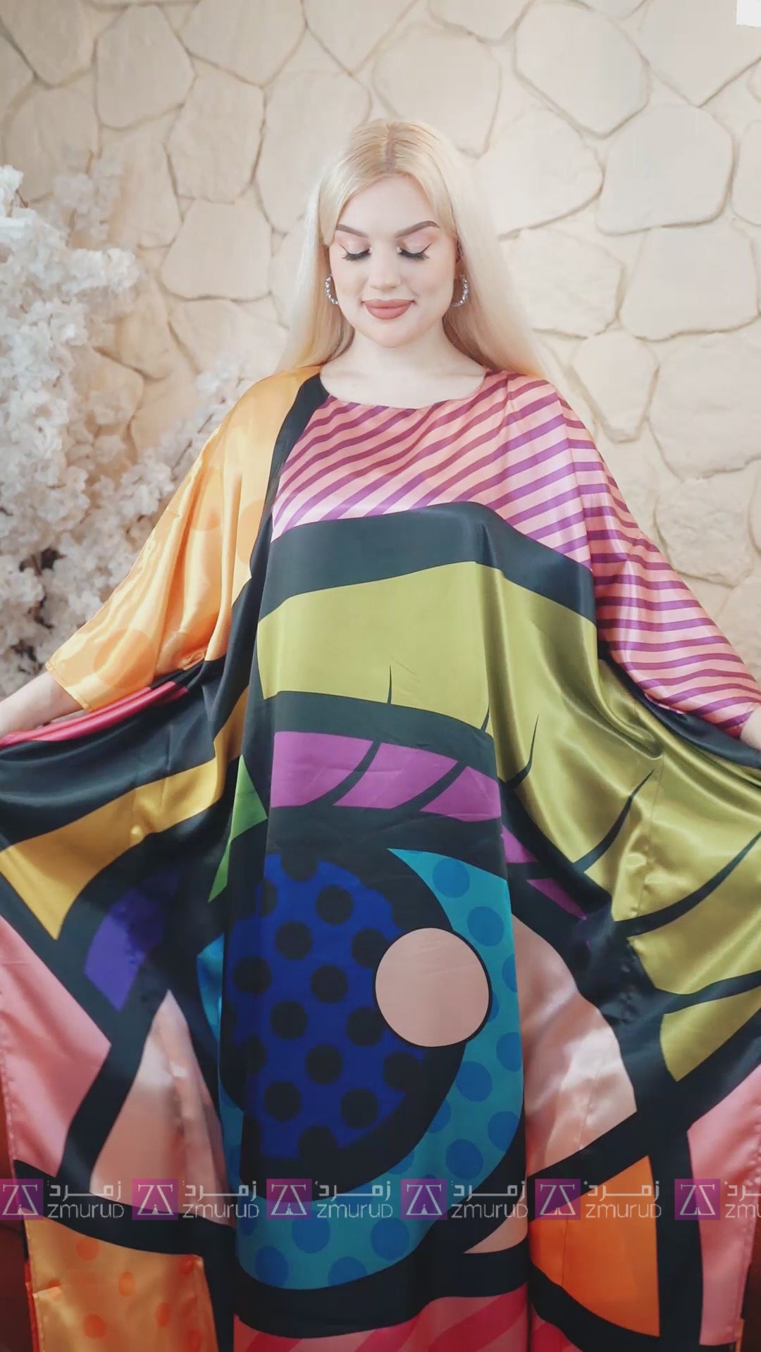 چلابية حرير ستان طباعة ديجيتال من تصميماتنا الخاصة فري سايز تناسب من ٧٠ ك إلى ١٣٠ك