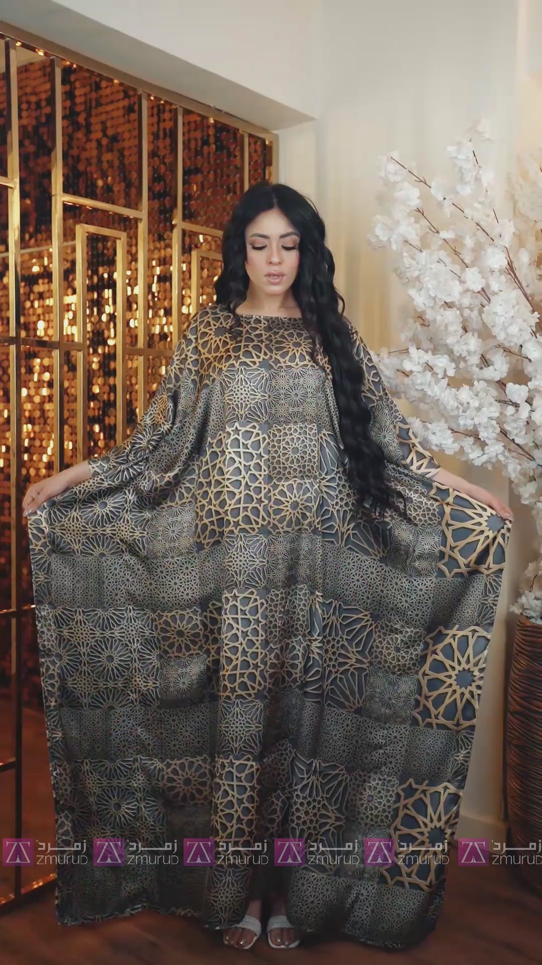 چلابية حرير ستان طباعة ديجيتال من تصميماتنا الخاصة فري سايز تناسب من ٧٠ ك إلى ١٣٠ك